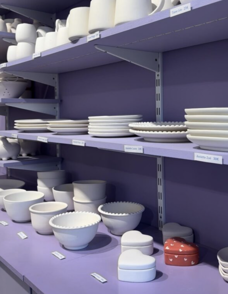 L’atelier dure environ 2h, le prix de la pièce varie en fonction de celle choisie, et tient compte de tout le matériel, la peinture, l’émaillage et la cuisson. Car oui ta pièce sera émaillée et cuite à 1000°C ce qui va lui donner toute sa splendeur et des couleurs éclatantes, mais pour ça patience, tu pourras récupérer la pièce une semaine plus tard.