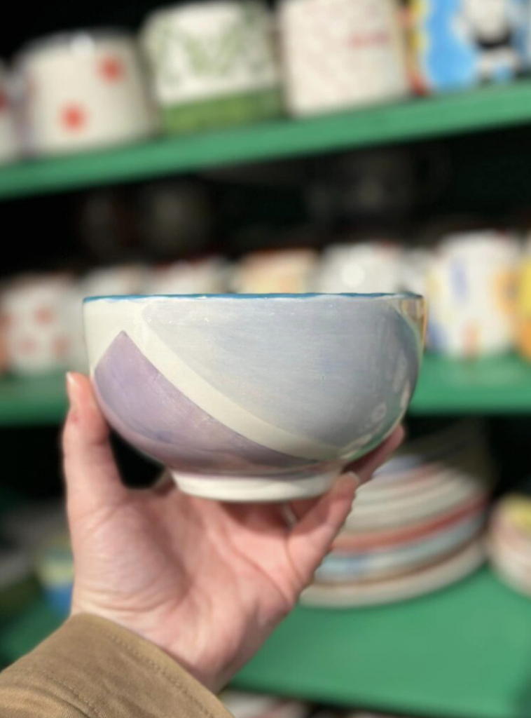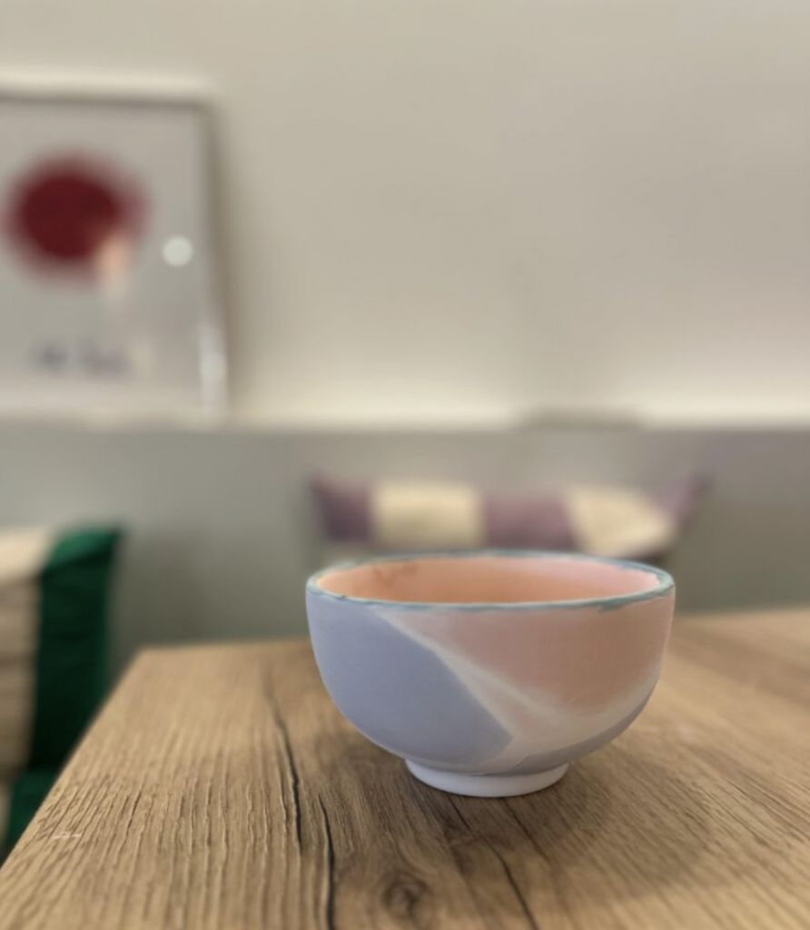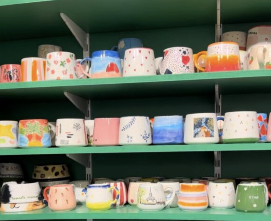 Le principe est simple, tu choisis ta céramique parmi un large panel : bol, tasse, assiette, mug, vases, pichets et tant d’autres. Attention, faire un choix est vraiment la partie la plus compliquée. Une fois la pièce sélectionnée, il est temps de la personnaliser. C’est l’heure de laisser parler ta créativité, tes envies. Fais-toi plaisir, c’est le moment le plus chouette. Une vraie évasion, je me suis laissé porter par l’ambiance, les couleurs, l’énergie. À toi de jouer avec les divers pinceaux, tampons, pochoirs, à faire des formes géométriques avec les différents masking tape. Bref, tu l’as compris il y a de quoi faire. Et pas de panique, tu n’es pas laissé tout seul, tu as une petite introduction en début d’atelier pour t’aiguiller, et si tu as la moindre question tu peux aller les voir sans problème. C’est vraiment un espace pour tout le monde, petits et grands, que tu sois un artiste confirmé ou un néophyte.